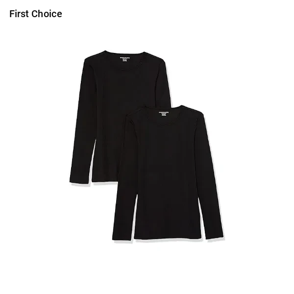 Women's Slim-Fit Layering Long Sleeve Knit Rib Crew Neck (Available in Plus Size), Pack of 2